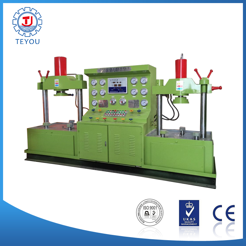 壓爪夾緊力所需的高壓液壓力,由設備本身的液壓系統增壓而成,試驗介質可采用水、煤油或空氣。液態介質可循環使用。試驗介質的試驗壓力經增壓達到設定的試驗壓力時,增壓自動停止,并自動進入設定的保壓計時,保壓計時結束后,系統自動發出聲光報警,以示測試結束。